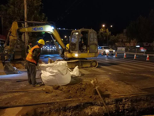 同時為確保原有管線安全,開挖過程全部采用人工作業,渣土裝袋不落地的綠色施工方法,恢復通行前對原有管線再采取加固措施,確保管道安全和通行安全的萬無一失。