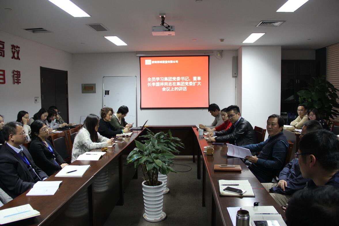 2017年11月15日下午,濟南西城置業全體員工學習集團黨委書記、董事長李國祥同志在集團黨委擴大會議上的講話,落實集團黨委要求,學好、學懂黨的十九大精神,振奮士氣,推動工作,努力完成各項任務指標,爭創更佳經營業績。