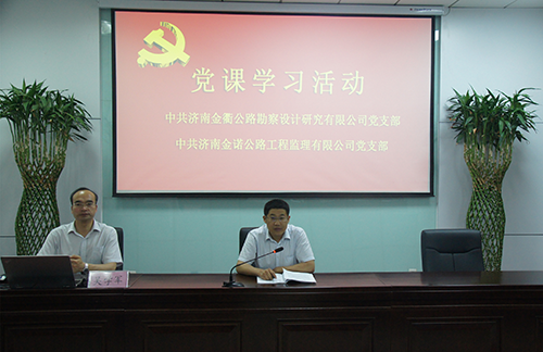 為進一步學習貫徹落實黨的十九大精神,深入領會山東省新舊動能轉換重大工程會議要求,激發廣大黨員干部新時代新擔當新作為,2018年5月25日下午,濟南金諾公路工程監理有限公司黨支部、濟南金衢公路勘察設計研究有限公司黨支部組織全體黨員、中層及以上干部、積極分子五十余人在金衢公司第一會議室進行黨課學習。濟南金諾公司黨支部書記、董事長兼總經理馮子強,濟南金衢公司黨支部書記、董事長兼總經理張建等領導出席學習活動,會議由濟南金衢公司張建書記主持。