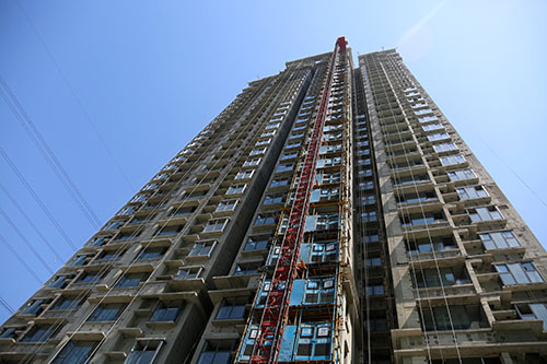目前,吳家堡安置房一期工程全部17棟單體結構及二次結構已經完成,17棟樓的屋面防水、室內抹灰也已完成,正在進行室內瓷磚鑲貼、混凝土地面及外墻抹灰施工,鋁合金窗安裝已完成70%,電梯的安裝已全面展開。在配套方面,裙房及商業結構、車庫頂板防水均已完成,室外回填土已完成70%,園林綠化施工單位已進場。