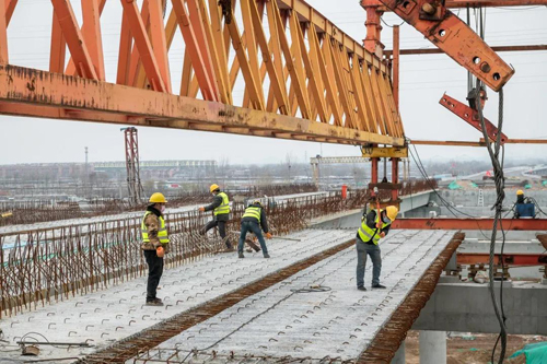 春節期間,張提勇沒有休假,每天都要到工地一線,隨時掌握和了解施工進展,協調解決施工過程中出現的各種問題。在嚴格落實各項防疫措施的前提下,青年突擊隊加班加點干出一個春節“大禮包”:架設箱梁8跨32片,順利跨越青銀高速,實現關鍵環節的高效突破!