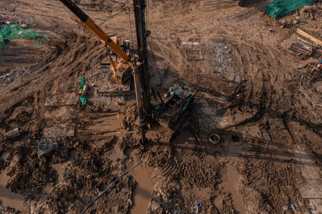 樁基施工準(zhǔn)備階段,根據(jù)項(xiàng)目情況優(yōu)化編制基礎(chǔ)工程施工組織方案,制定樁基施工布置圖,按基樁類型、特點(diǎn)劃分9個(gè)施工區(qū)域,明確基樁編號(hào)、施工順序、基樁檢測(cè)等策劃內(nèi)容,有效串聯(lián)設(shè)計(jì)、施工、監(jiān)理、檢測(cè)、驗(yàn)收等環(huán)節(jié)。在3萬平方米打樁區(qū)域,同時(shí)布置了20余臺(tái)旋挖鉆機(jī)、30余臺(tái)汽車吊、20余臺(tái)裝載機(jī),施工勞務(wù)人員300余人,投入9個(gè)施工區(qū)域24小時(shí)不間斷作業(yè)。自2021年10月22日開始全面鉆進(jìn),11月26日,澆筑完成最后一根樁基,山大二院項(xiàng)目全體人員迎難而上,酣戰(zhàn)月余,克服暴雪、大風(fēng)等惡劣天氣,施工日均完成樁基80余顆,順利完成2452顆樁基的施工,完成樁基產(chǎn)值約1億元,占項(xiàng)目建安總投資的4.2%。完成項(xiàng)目建設(shè)第一個(gè)里程碑節(jié)點(diǎn),實(shí)現(xiàn)全面進(jìn)入下步土方開挖施工節(jié)點(diǎn)跨越。