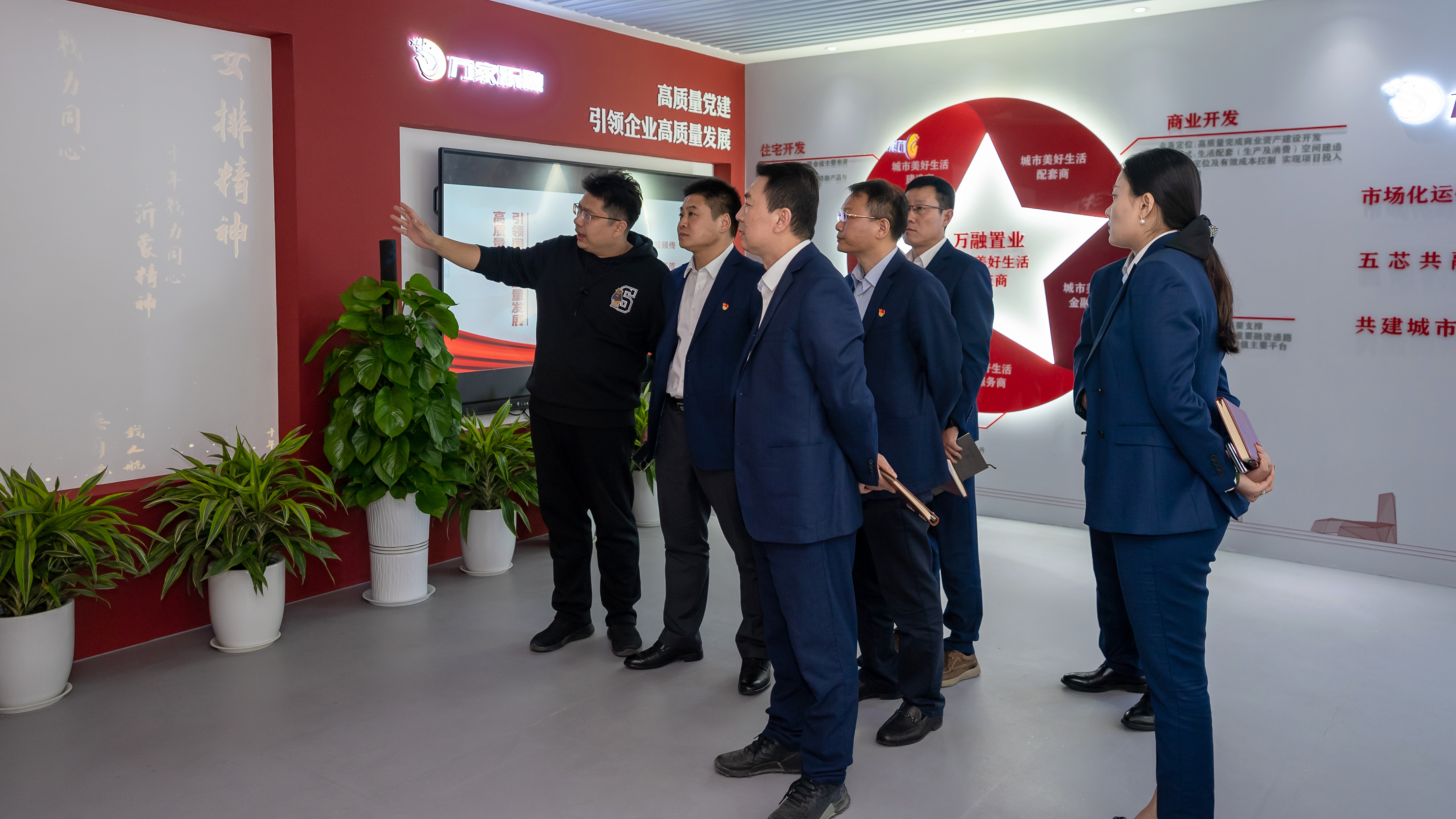 會(huì)后,與會(huì)人員集體參觀了萬(wàn)融置業(yè)黨建陣地和黨建會(huì)客廳。
