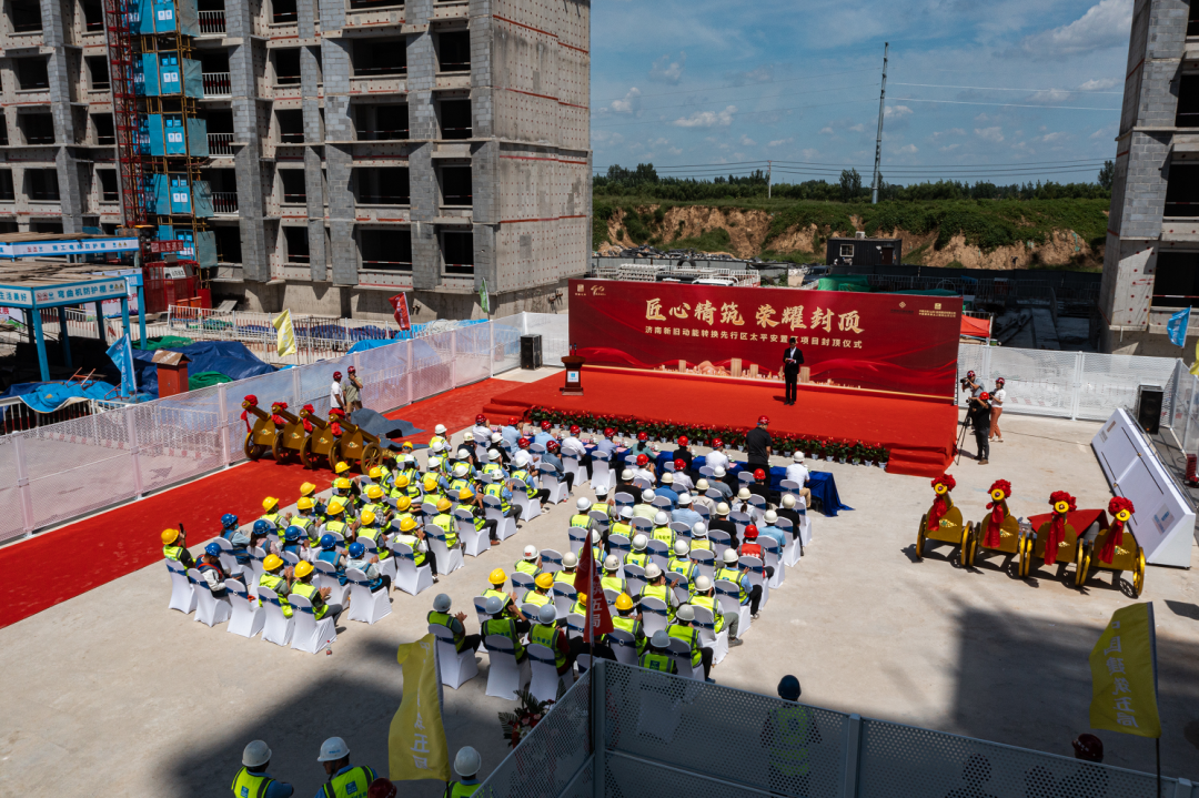 8月27日,濟南新舊動能轉(zhuǎn)換起步區(qū)太平安置區(qū)項目北地塊1號樓和5號樓同時封頂,為該項目首批封頂樓體,標(biāo)志著項目建設(shè)取得階段性成果,將進(jìn)入主體陸續(xù)封頂?shù)男码A段。起步區(qū)管委會、濟南城市建設(shè)集團(tuán)、中建五局及各參建單位的相關(guān)負(fù)責(zé)同志,一線建設(shè)者代表參加封頂儀式。