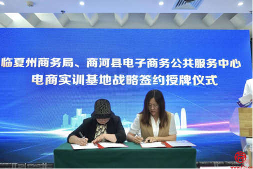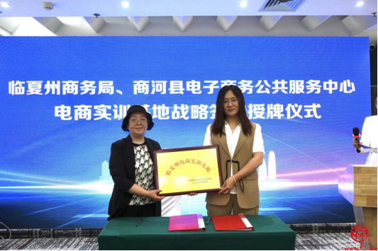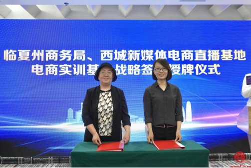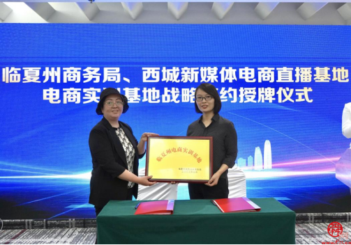 在與會人員的共同見證下,臨夏州商務局與西城新媒體電商直播基地、商河商務服務中心簽署了電商實訓基地戰略協議,并為兩家電商實訓基地授牌。
