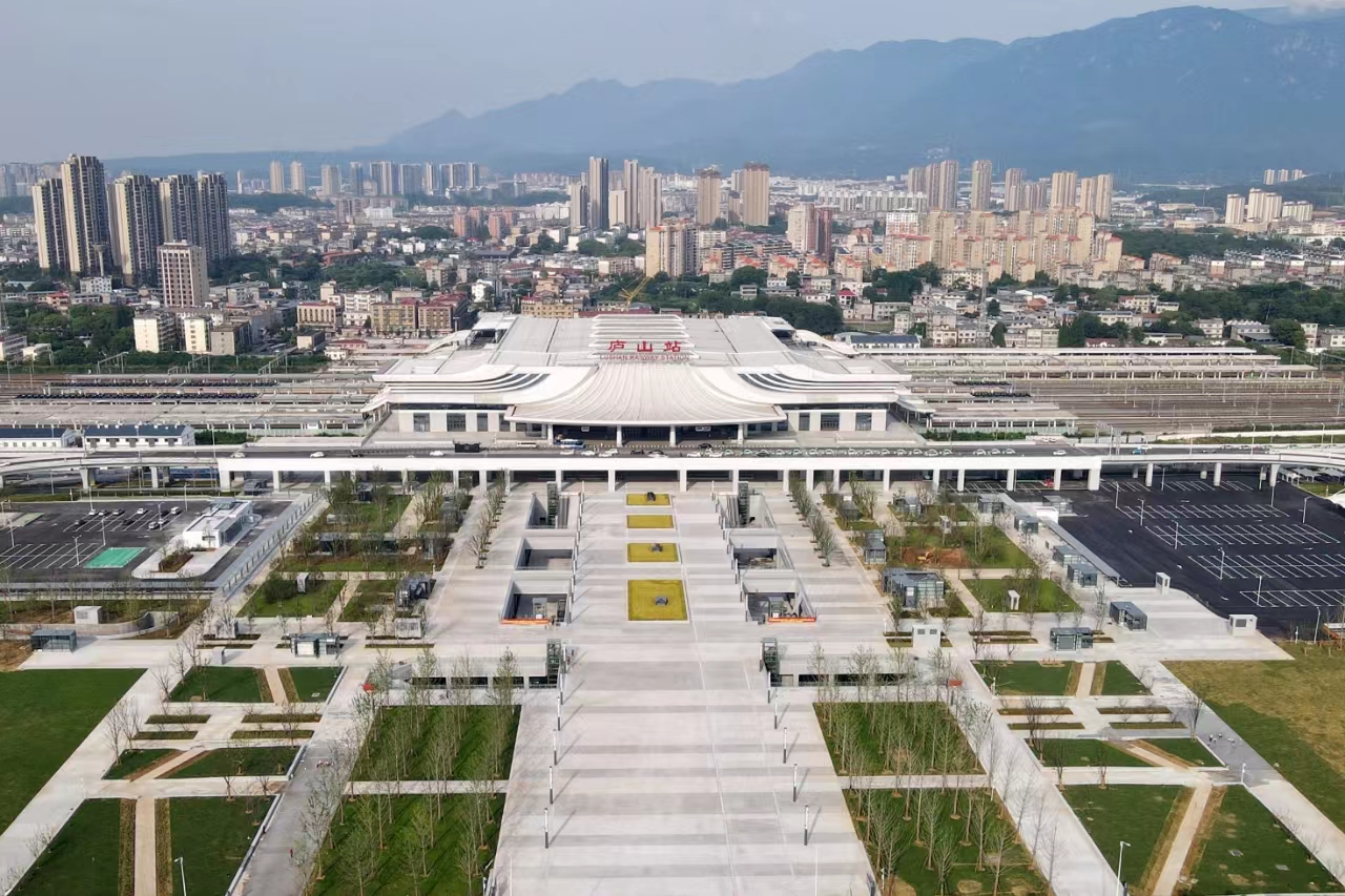 九江廬山站高鐵樞紐被定位為昌九走廊新樞紐、贛北發(fā)展新引擎、都市九江新門戶,遠(yuǎn)期鐵路旅客發(fā)送量將達(dá)到約2200萬(wàn)人次。城建集團(tuán)公司承建的九江高鐵樞紐工程作為廬山站配套工程,是鐵路與公交客運(yùn)的聯(lián)系紐帶,也是廬山站的交通集散中心。項(xiàng)目建設(shè)內(nèi)容主要包括高架匝道、地面道路、集散廣場(chǎng)和地下空間四部分。其中,高架匝道施工由連接快速路、地面道路與廬山站站房的8條匝道橋組成,總長(zhǎng)約3.5公里;地面道路施工包括一橫四縱的五條道路,總長(zhǎng)約2.5公里;集散廣場(chǎng)占地約99畝,廣場(chǎng)左側(cè)為公交車場(chǎng)站占地面積約18畝,右側(cè)為占地約25畝的長(zhǎng)途車場(chǎng)站;地下空間共兩層,總建筑面積約為11萬(wàn)平方米。目前項(xiàng)目高架匝道、地面道路、集散廣場(chǎng)建設(shè)均已完成,并開(kāi)放投入使用。