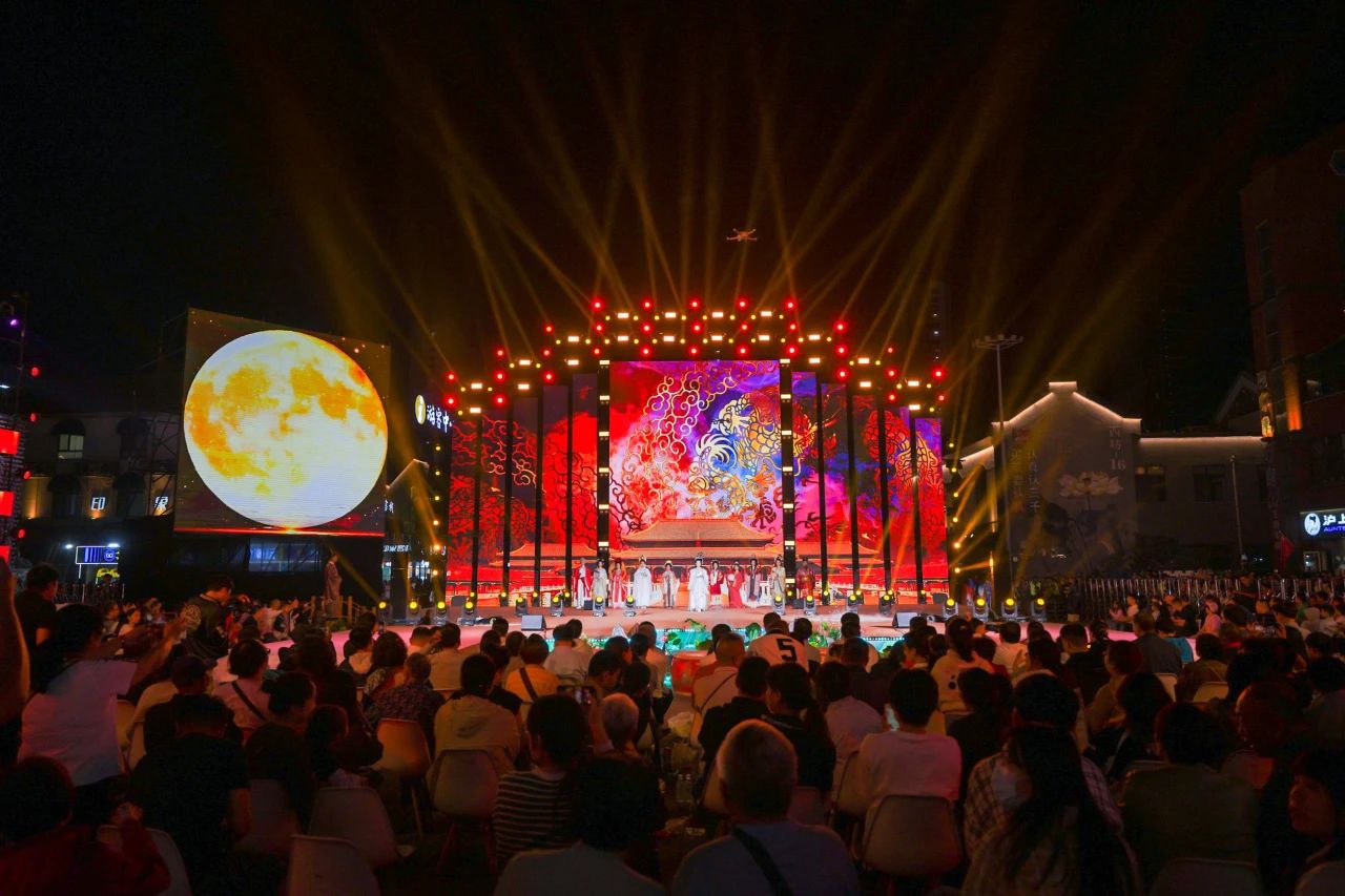 音樂(lè)、舞蹈、雜技、燈光秀……街區(qū)上流光溢彩、燈火輝煌,舞臺(tái)上衣香袂影、霓裳起舞,市民游客共赴秋月古風(fēng)浪漫,共享中國(guó)文化之美。今年中秋拜月大典將中秋佳節(jié)所蘊(yùn)含的傳統(tǒng)習(xí)俗、鄉(xiāng)愁思念和家國(guó)情懷融為一體,以歌舞、樂(lè)器、戲曲曲藝非遺為主要載體,唯美、浪漫,創(chuàng)新打造具有未來(lái)感的全景式舞臺(tái),在虛與實(shí)、古與今、遠(yuǎn)與近的巧妙轉(zhuǎn)換中實(shí)現(xiàn)沉浸式體驗(yàn)。在活動(dòng)現(xiàn)場(chǎng),已經(jīng)連續(xù)參加六屆拜月大典的市民王鵬飛告訴記者:“今年我把剛1歲的寶寶也帶來(lái)了,文化熏陶要趁早,以后還要年年來(lái),這樣才能不忘初心嘛!”