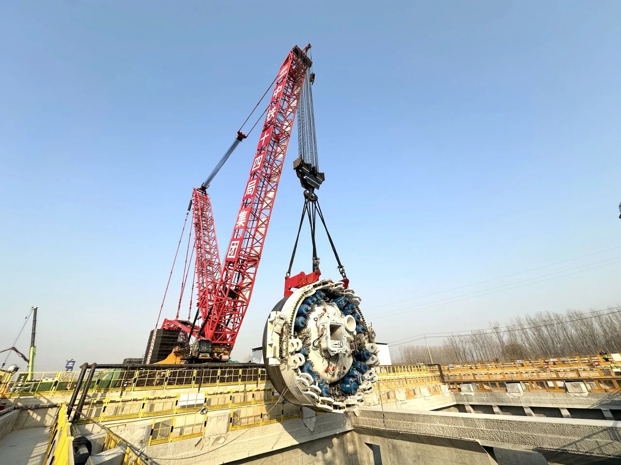 用于濟南市航天大道穿黃隧道施工的“啟航號”盾構機長達161米,總重量約4295噸,盾構機直徑15.06米。此次吊裝下井的主驅動寬7.6米、重390噸,是整個盾構機的核心部件,也是整個盾構機吊裝組裝階段最為關鍵的一環(huán)。