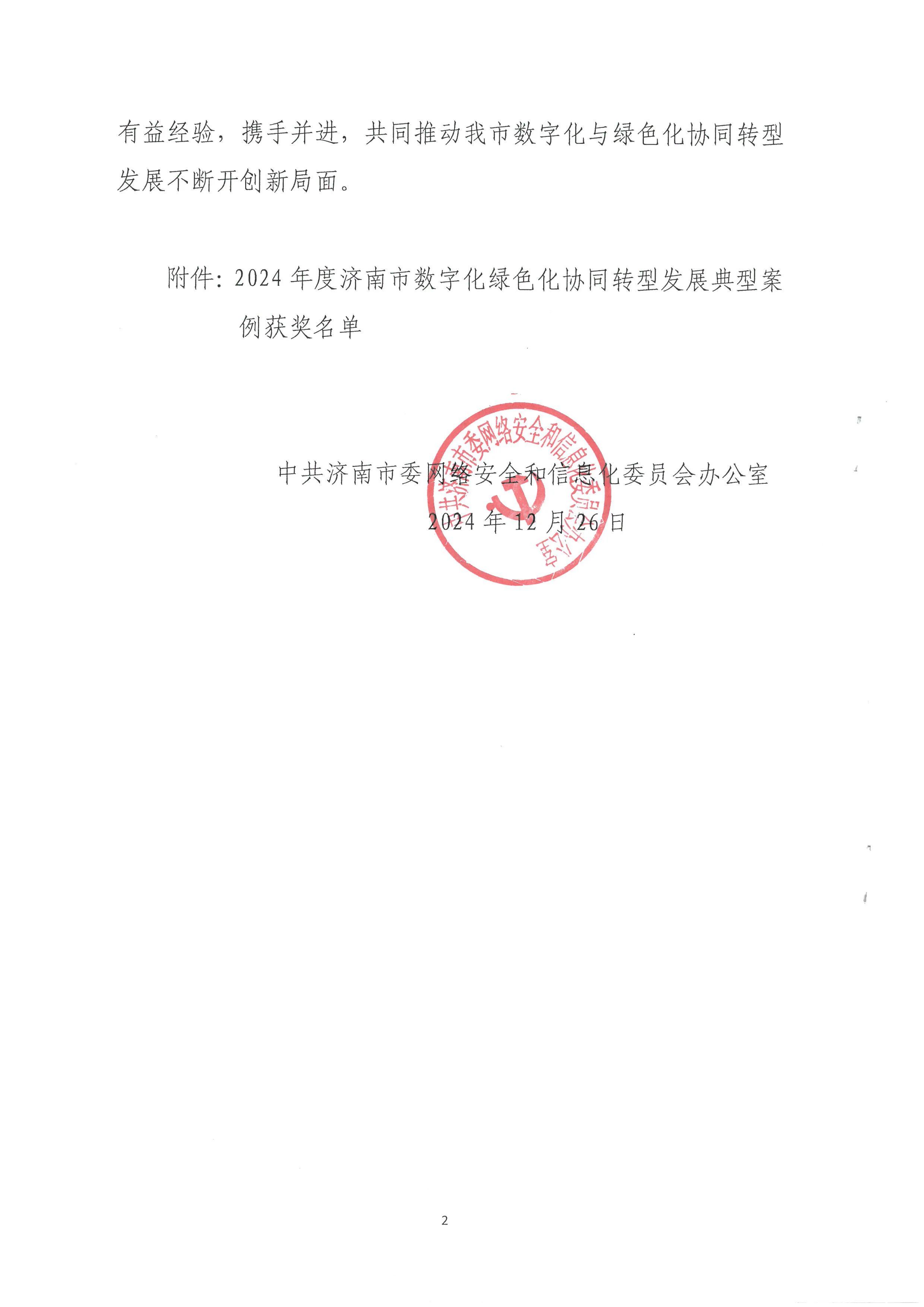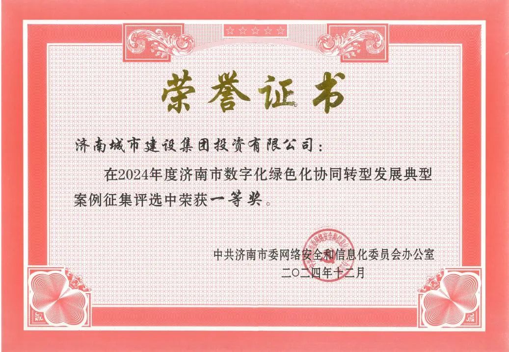 近日,濟南市委網(wǎng)信辦公布了《2024年度濟南市數(shù)字化綠色化協(xié)同轉(zhuǎn)型發(fā)展典型案例獲獎情況的通知》。經(jīng)過嚴格的考察、評審與公示,建設集團所屬濟南城市建設集團投資有限公司提交的“綠色金融協(xié)同賦能平臺”案例在眾多參評項目中脫穎而出,榮獲一等獎。